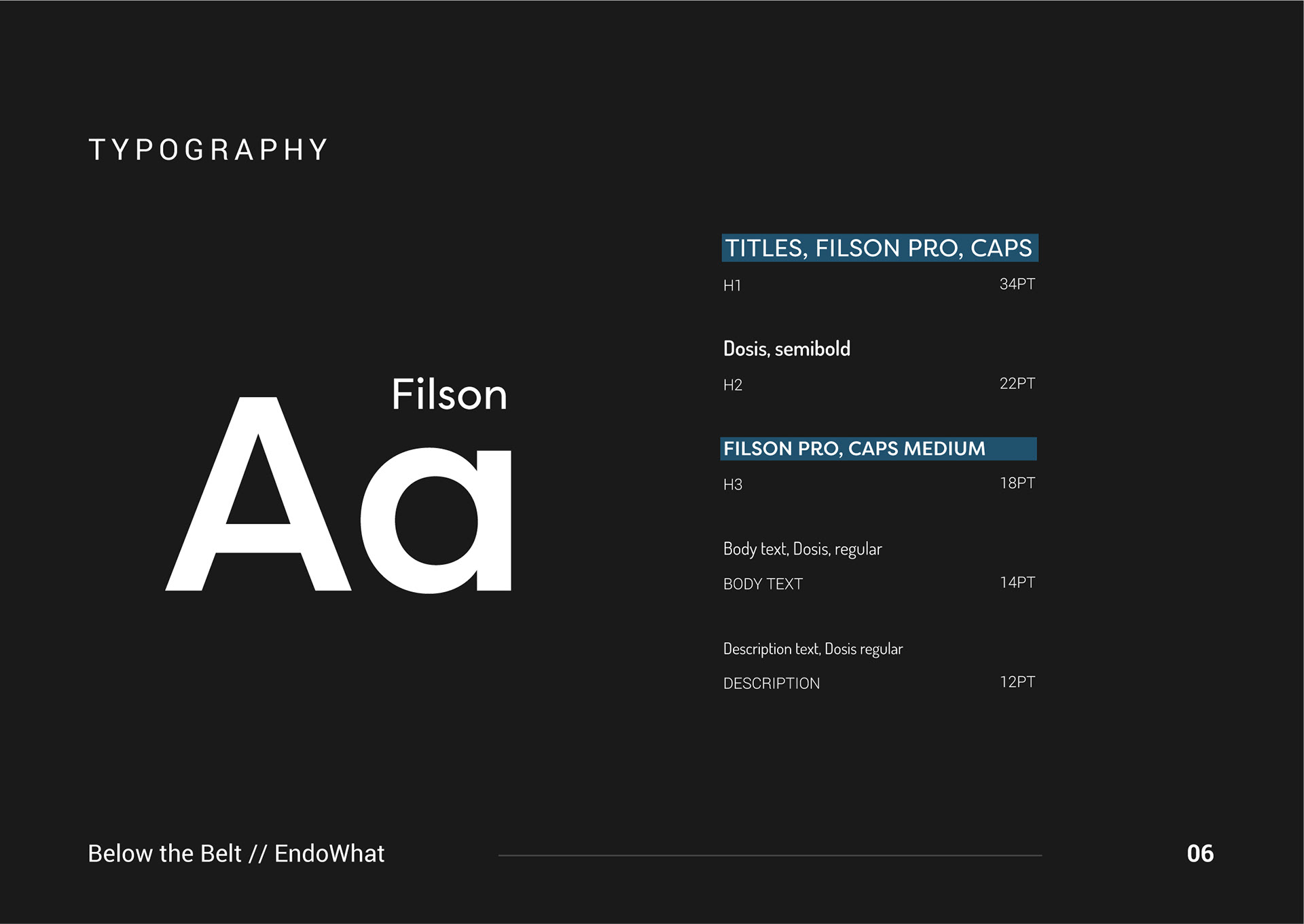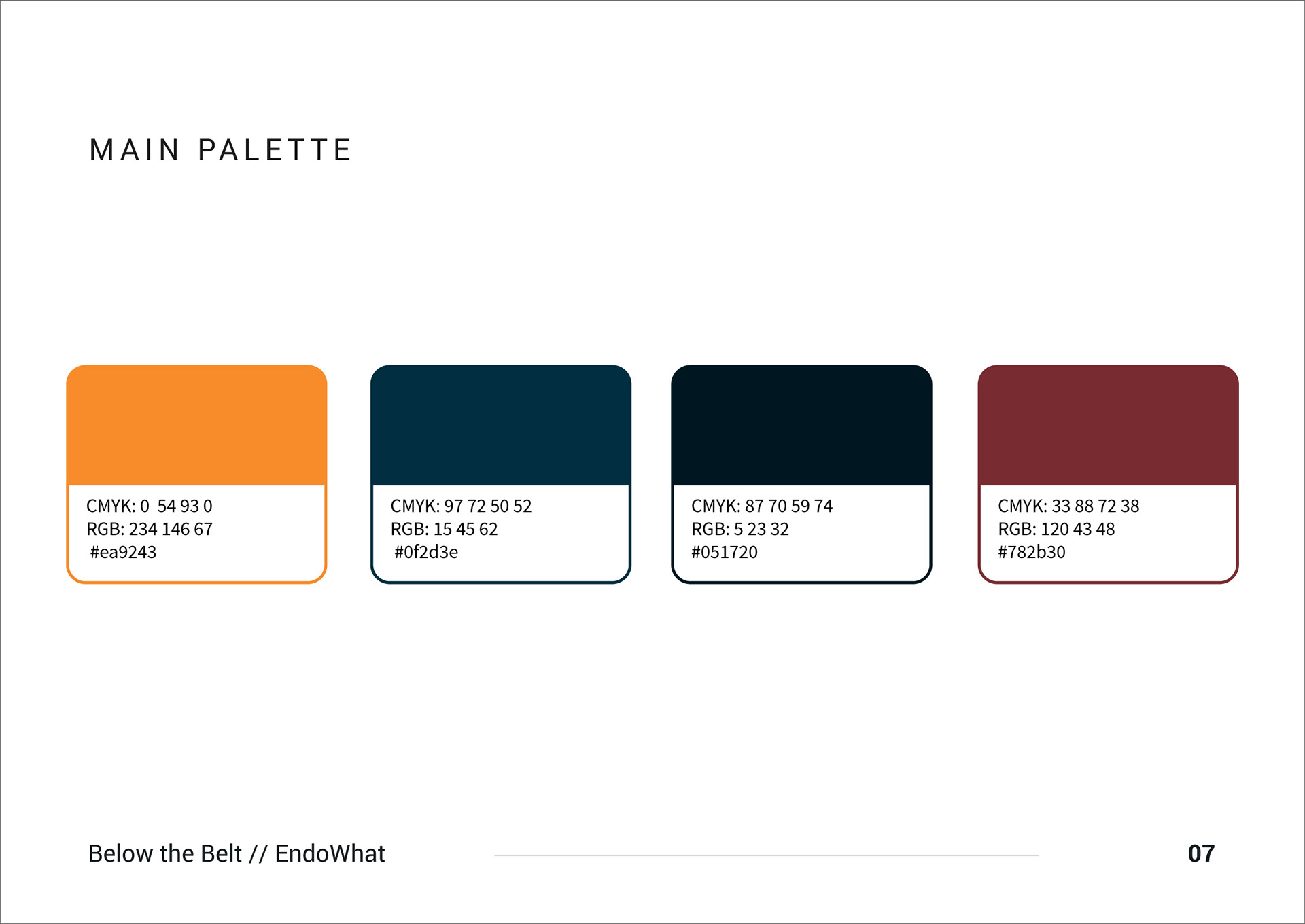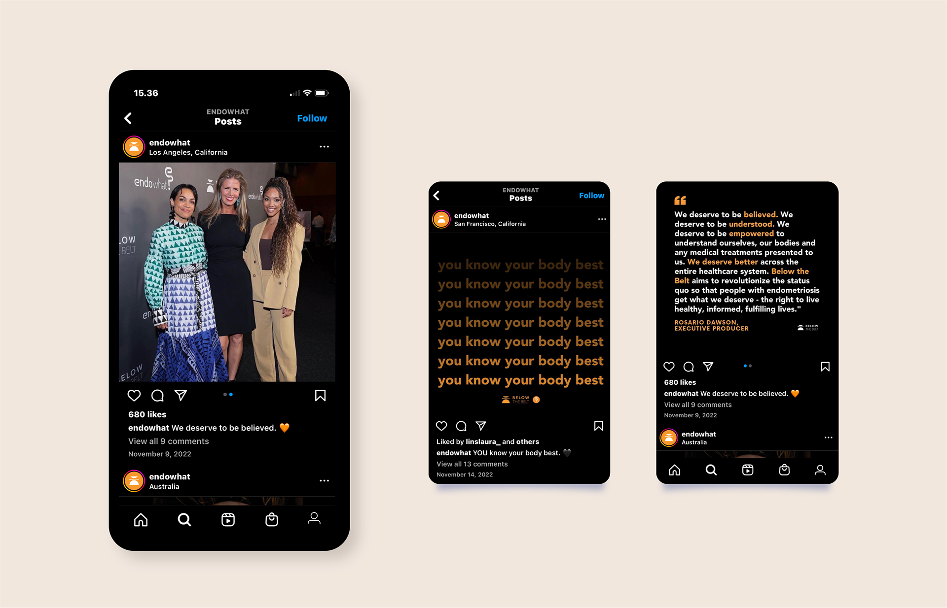 By merging elements from the Endo What visual language with a fresh, distinct system for Below the Belt, the identity honors the existing movement while establishing a standalone brand. It supports both awareness and marketing goals by resonating with core advocates and engaging new audiences.
