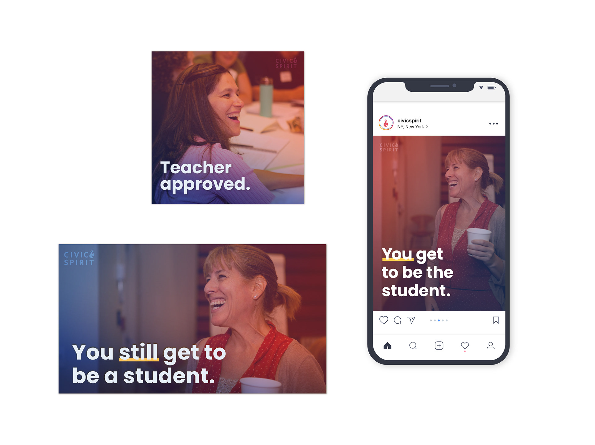 Civic Spirit is a nonprofit dedicated to strengthening civic education and belonging in faith-based schools. In advance of launching their pilot program, We the Educators, I joined a small team to shape the marketing strategy. Partnering with a messaging and marketing strategist, I led the development of a visual identity designed to drive engagement and increase program signups.