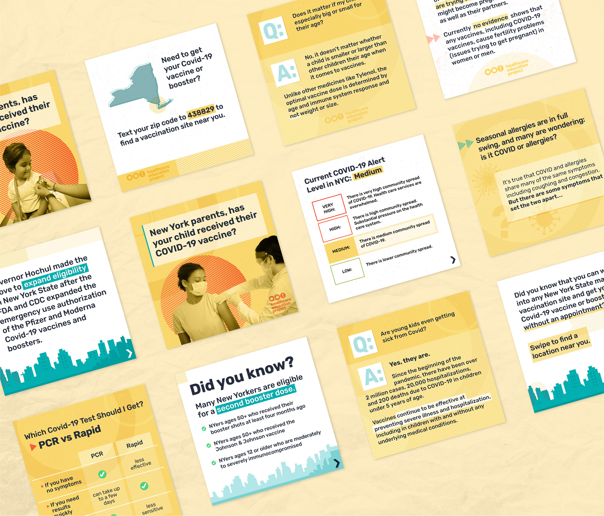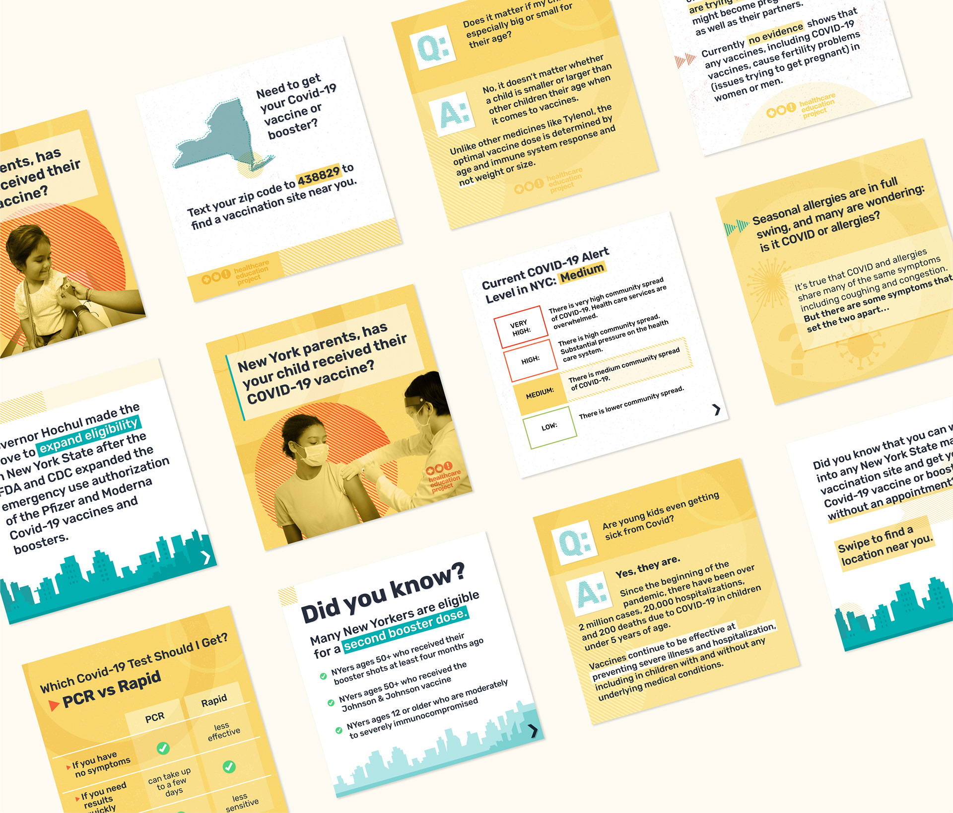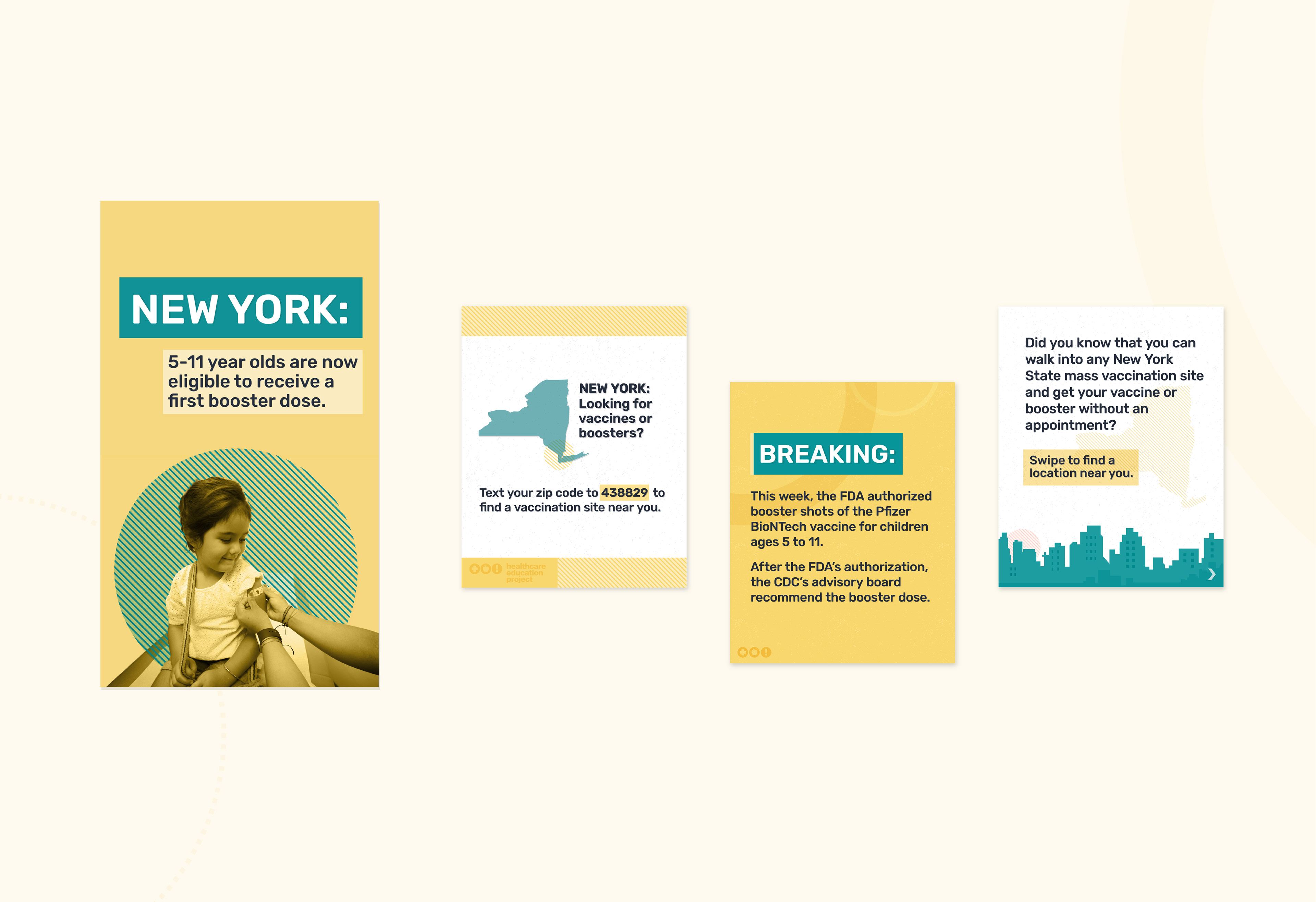 I created the visual identity for a COVID-19 vaccine education campaign led by the New York Healthcare Education Project. The campaign aimed to encourage key audience groups to get vaccinated and boosted.